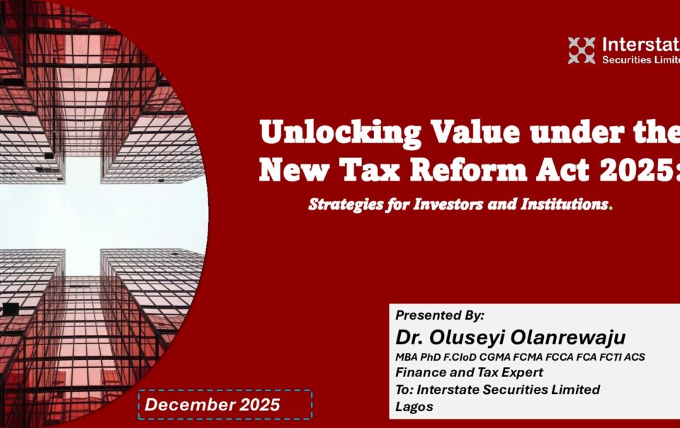 Outline The New Nigerian Tax Law “General Overview” Nigeria’s Competitiveness Context: The 30% CIT Imperative Economic Development Incentive (EDI): Policy Rationale, Timing, and Investor Context Capital Gains Tax (CGT): Definition, History, and Current Legal Position Withholding Tax (WHT): Liquidity, Yield, […]